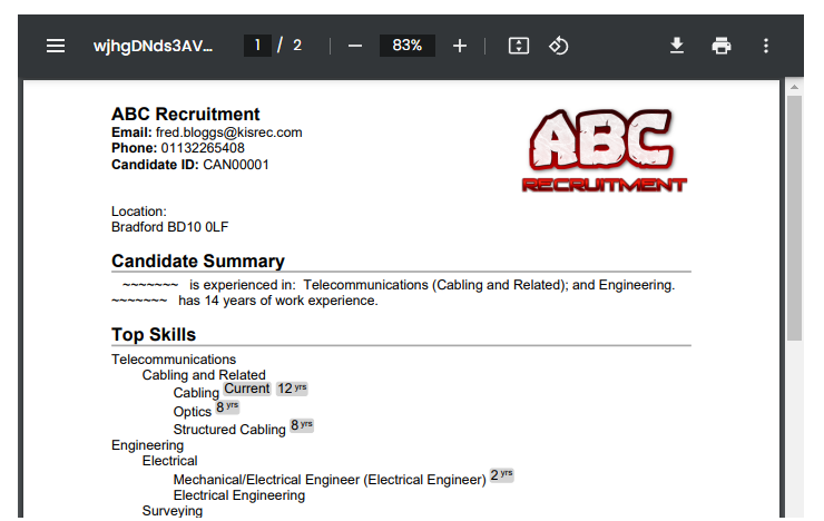 You can also upload your own branded or redacted version of the candidate's CV. If you don't have your own, KISREC can create these for you.