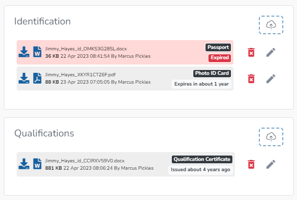 The file display will be updated to show the document type and provide details for any expiration or issued dates.