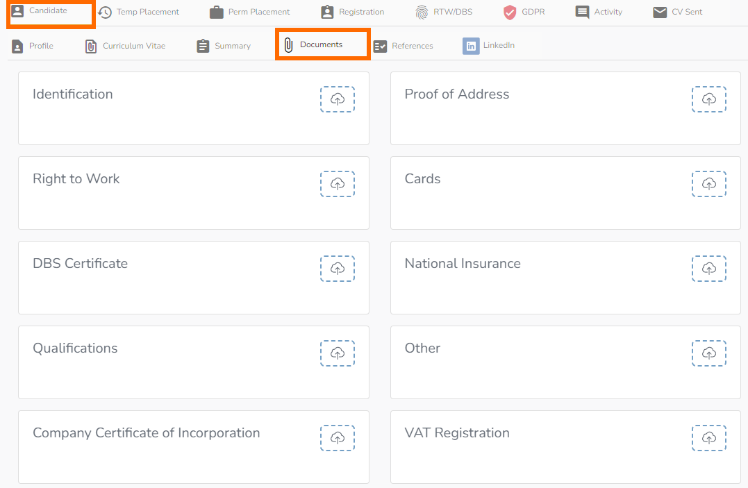 In this guide we'll be going through the steps to upload and manage the documents in a candidate profile.